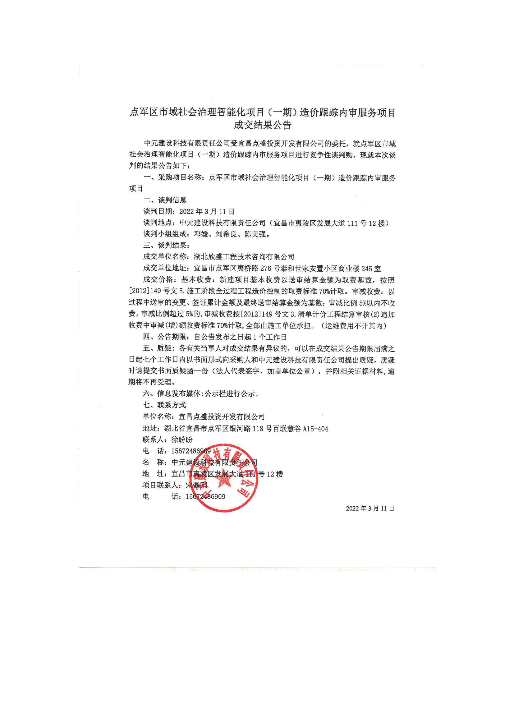 點(diǎn)軍區(qū)市域社會(huì)治理智能化項(xiàng)目(一期)造價(jià)跟蹤內(nèi)審服務(wù)項(xiàng)目成交公告