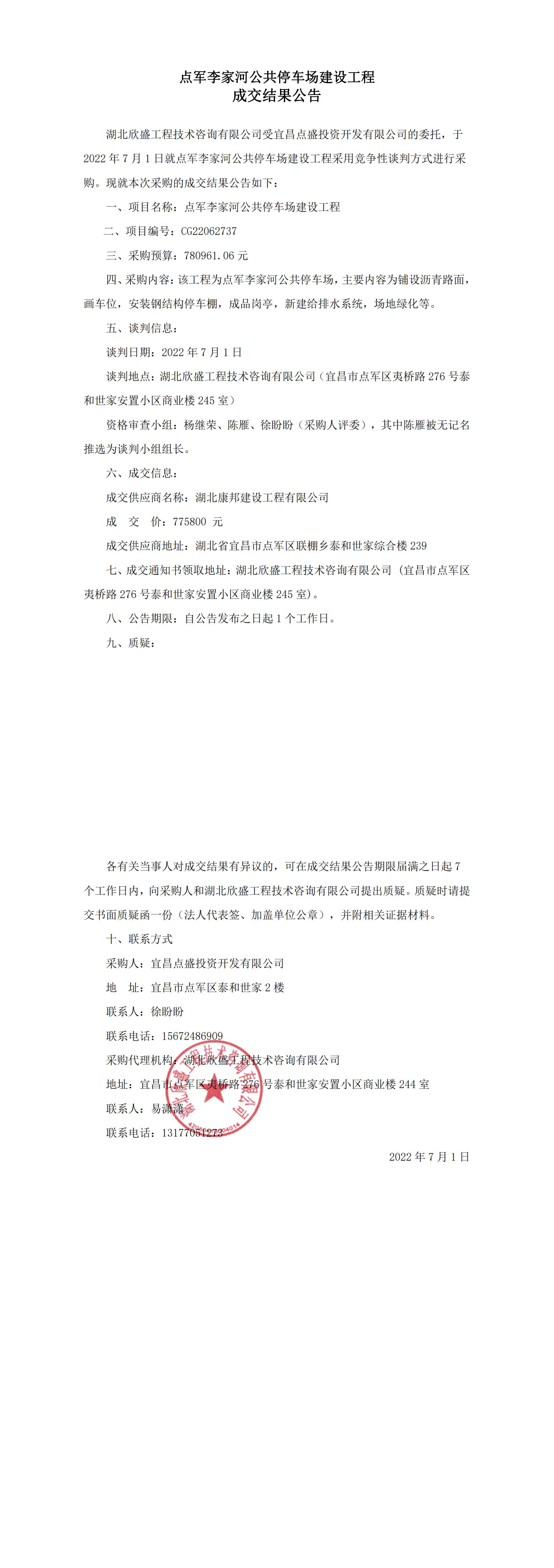 點(diǎn)軍李家河公共停車(chē)場(chǎng)建設(shè)工程成交結(jié)果公告