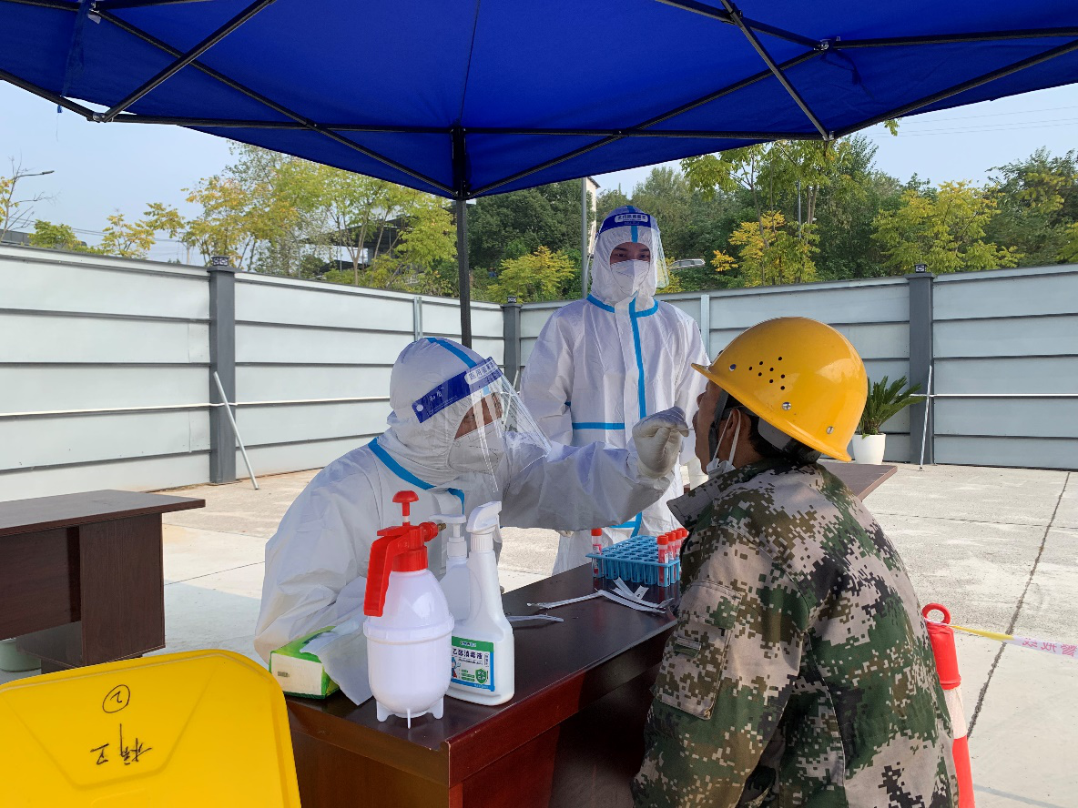 11月5日,為響應(yīng)區(qū)政府防疫部門有關(guān)防疫要求,全面筑牢疫情防線,切實(shí)保障全體施工人員的身體健康和生命安全,點(diǎn)盛公司聯(lián)動(dòng)點(diǎn)軍區(qū)橋邊衛(wèi)生院和國機(jī)集團(tuán)在奧錦花園安置房(三期)項(xiàng)目部開展核酸采樣試點(diǎn)運(yùn)行工作。取得核酸采樣合格證的奧錦花園三期項(xiàng)目安全員李懿、龍明超為本項(xiàng)目300余名工人順利的完成了核酸采樣工作。