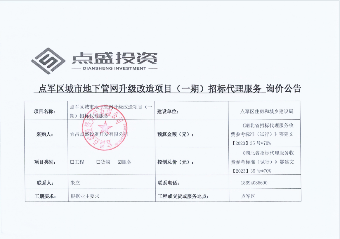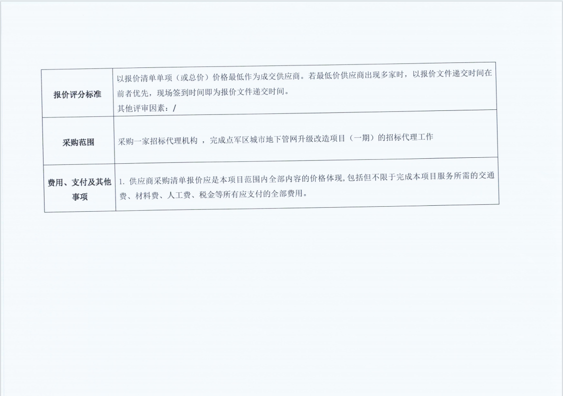 點(diǎn)軍區(qū)城市地下管網(wǎng)升級(jí)改造項(xiàng)目(一期)招標(biāo)代理服務(wù) 詢價(jià)公告