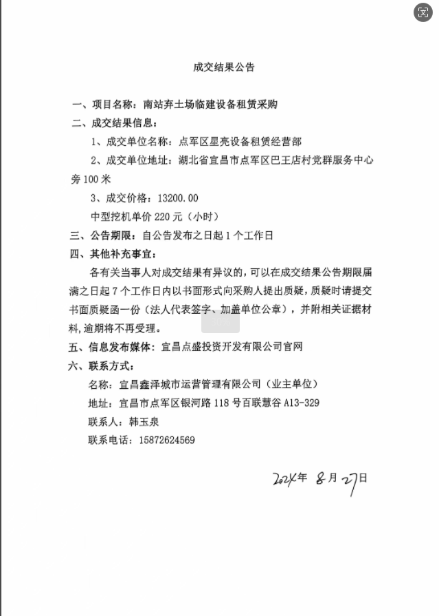 南站路棄土場臨建設備租賃采購項目成交公告