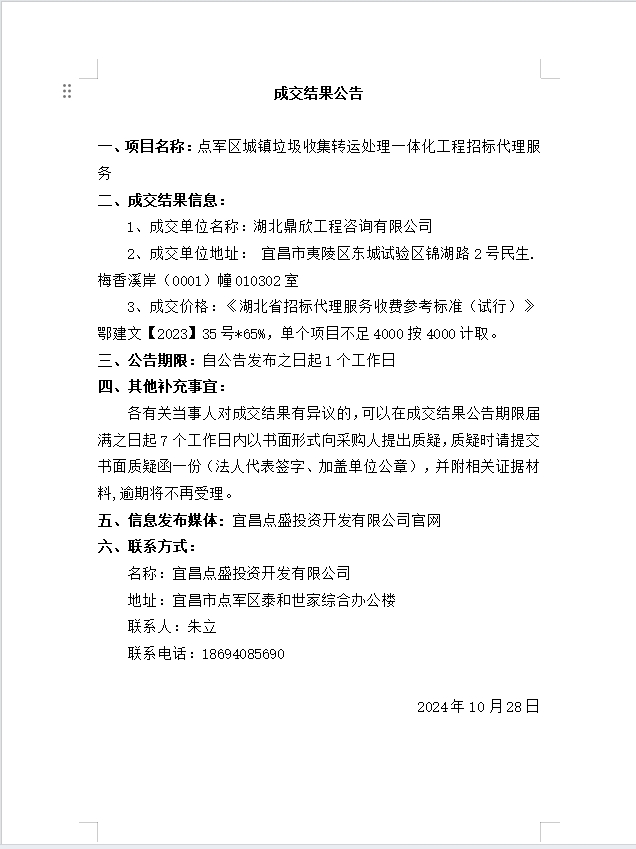 點(diǎn)軍區(qū)城鎮(zhèn)垃圾收集轉(zhuǎn)運(yùn)處理一體化工程 招標(biāo)代理服務(wù)成交公告
