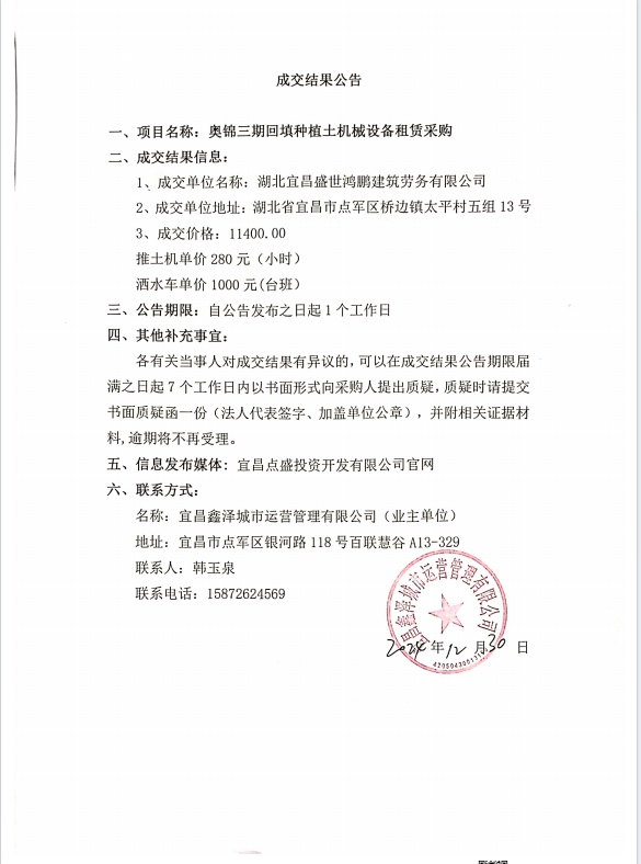 奧錦三期種植土回填機(jī)械設(shè)備租賃采購成交公告