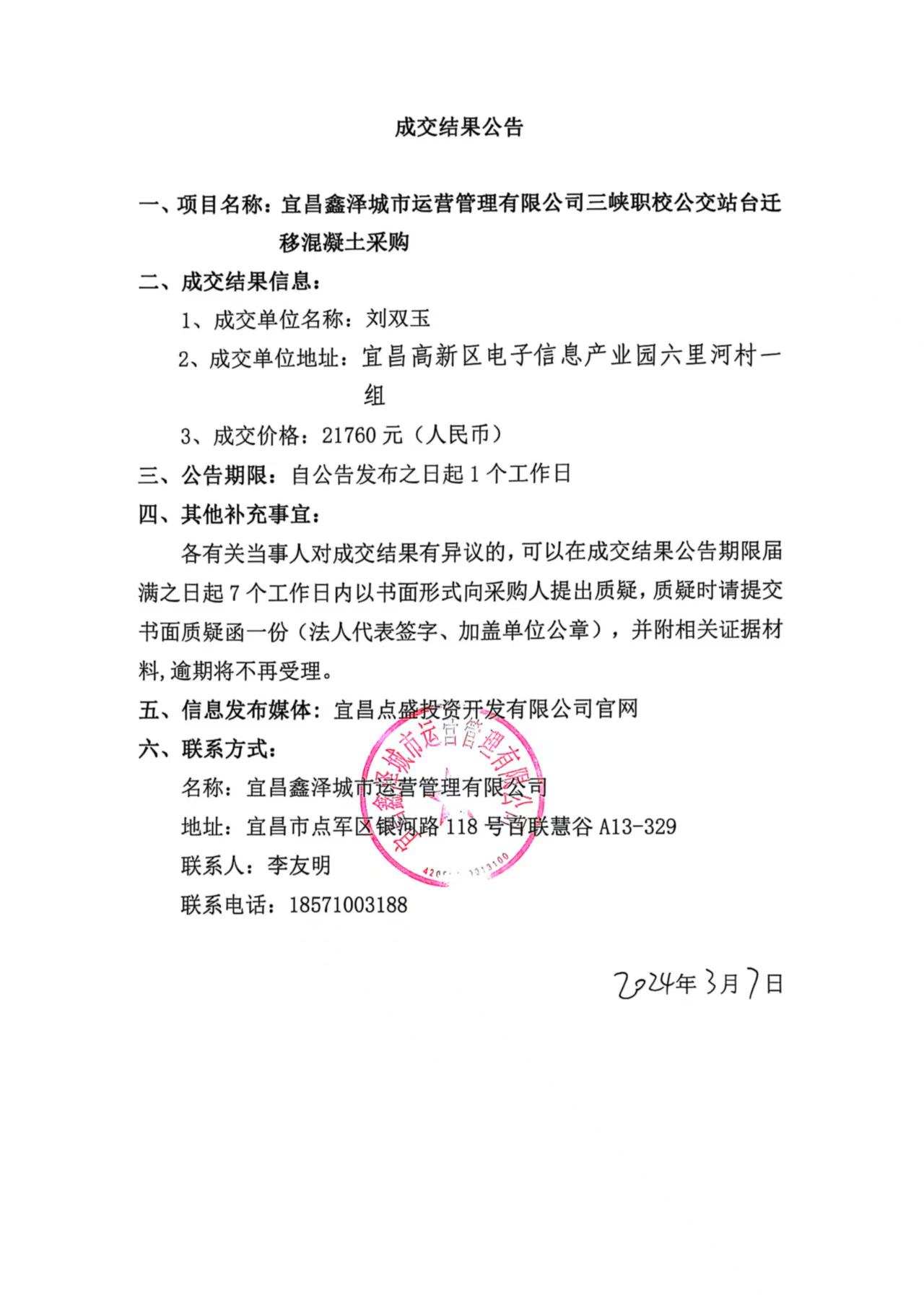 三峽職校公交站臺(tái)遷移混凝土采購(gòu)成交公告