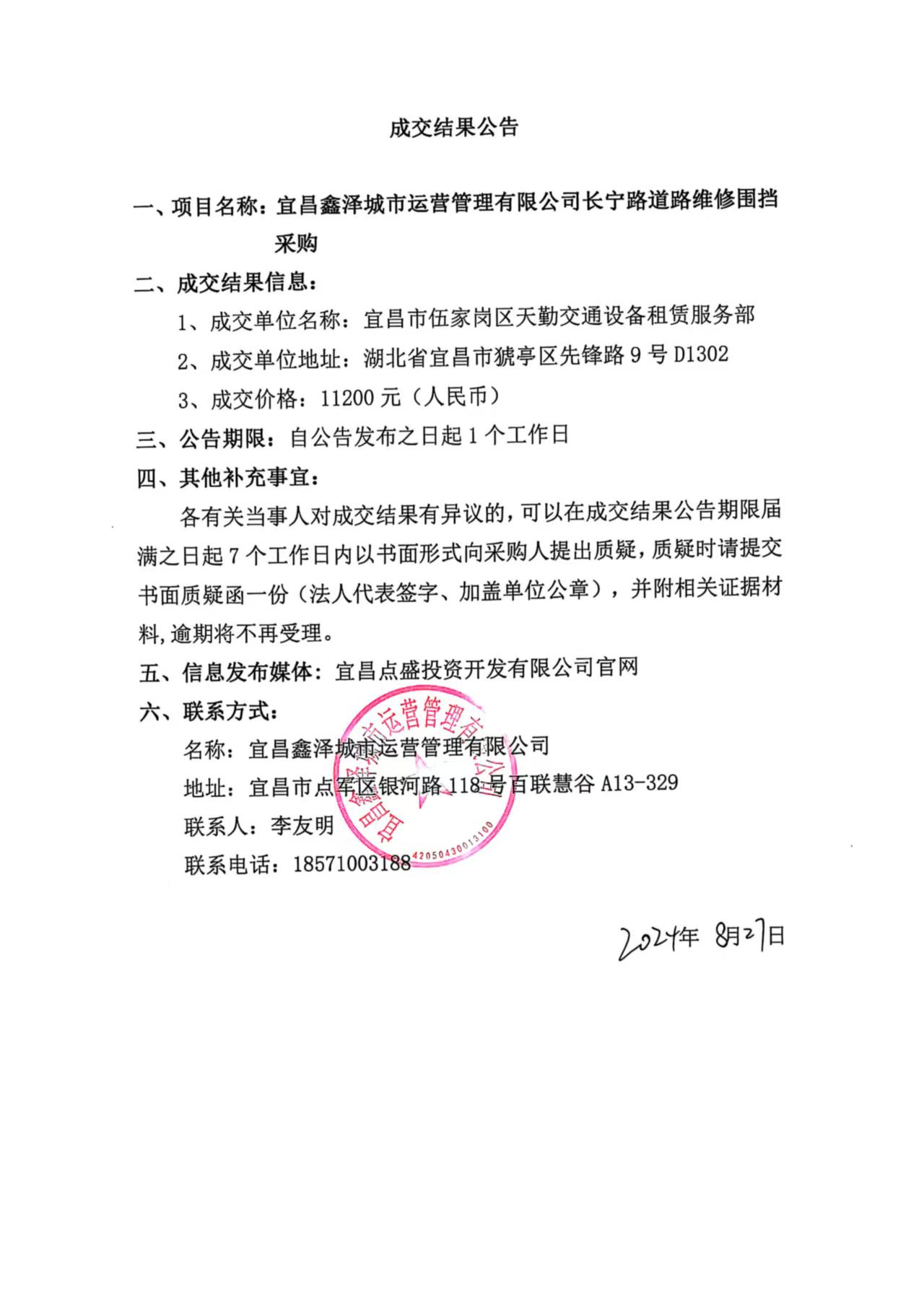 長寧路道路維修圍擋采購成交公告