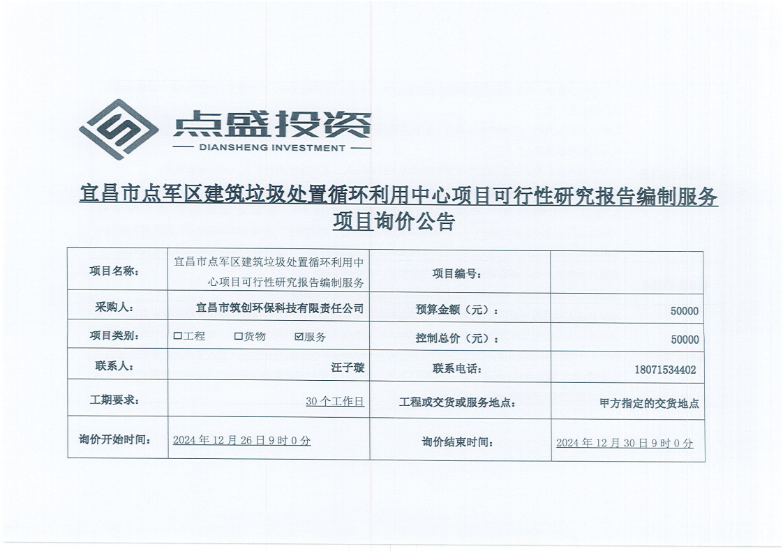 宜昌市點軍區(qū)建筑垃圾處置循環(huán)利用中心項目可行性研究報告編制服務(wù)項目詢價公告