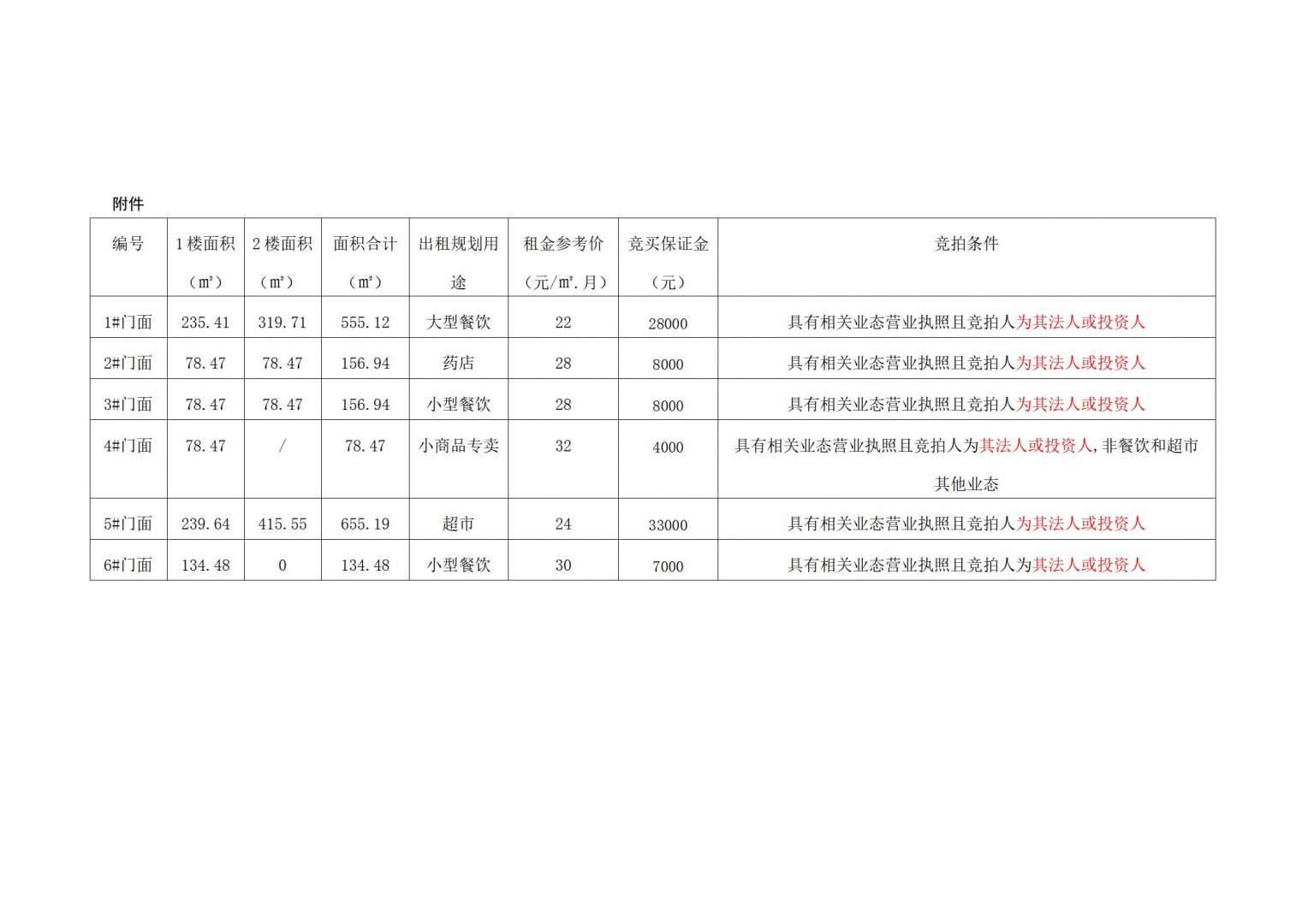 上述第9號門面房整體出租1至2樓,10#門面房只出租一樓。目前,上述門面房均處于空置的毛坯狀態(tài),現(xiàn)狀分別對外出租。相關(guān)競買事項(xiàng)詳見本公司拍賣資料中的《競買協(xié)議》樣本特別說明條款內(nèi)容,且標(biāo)... |